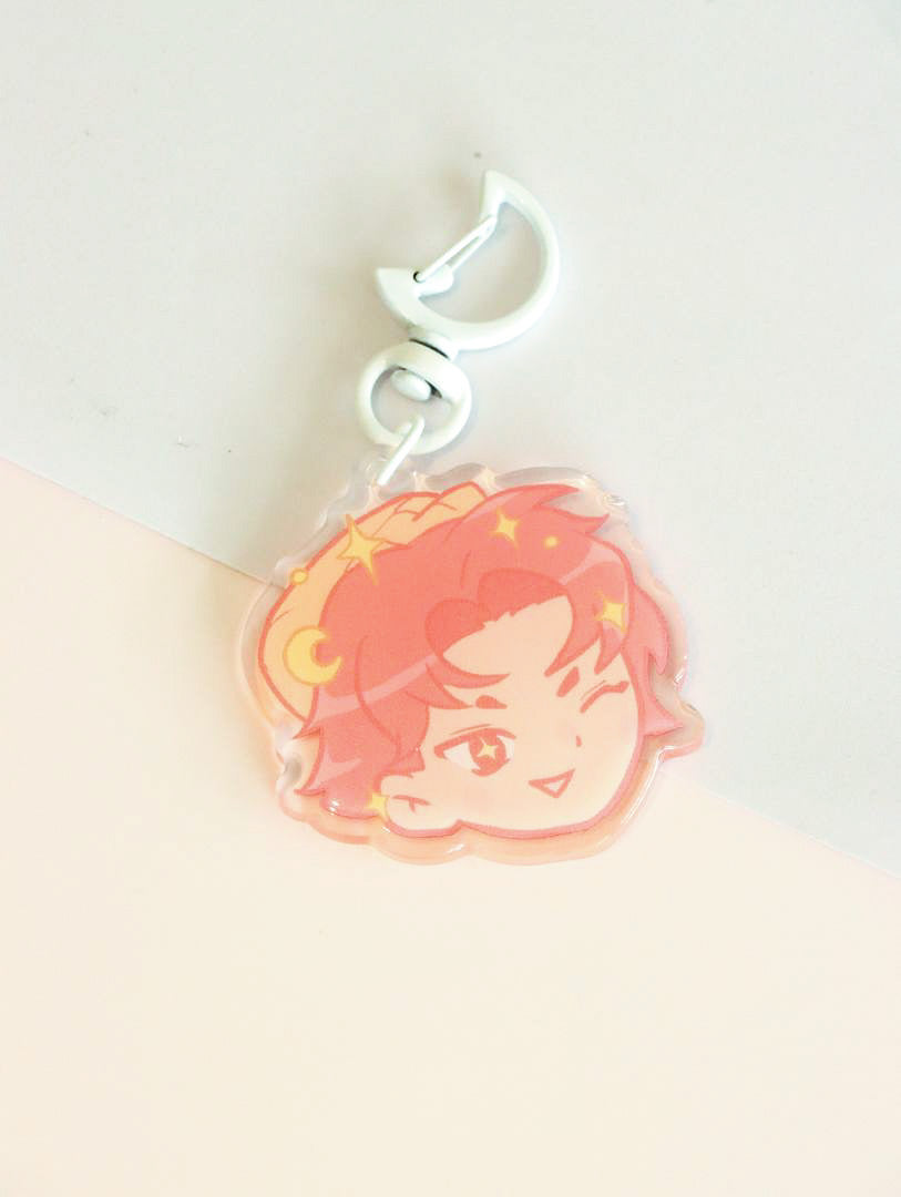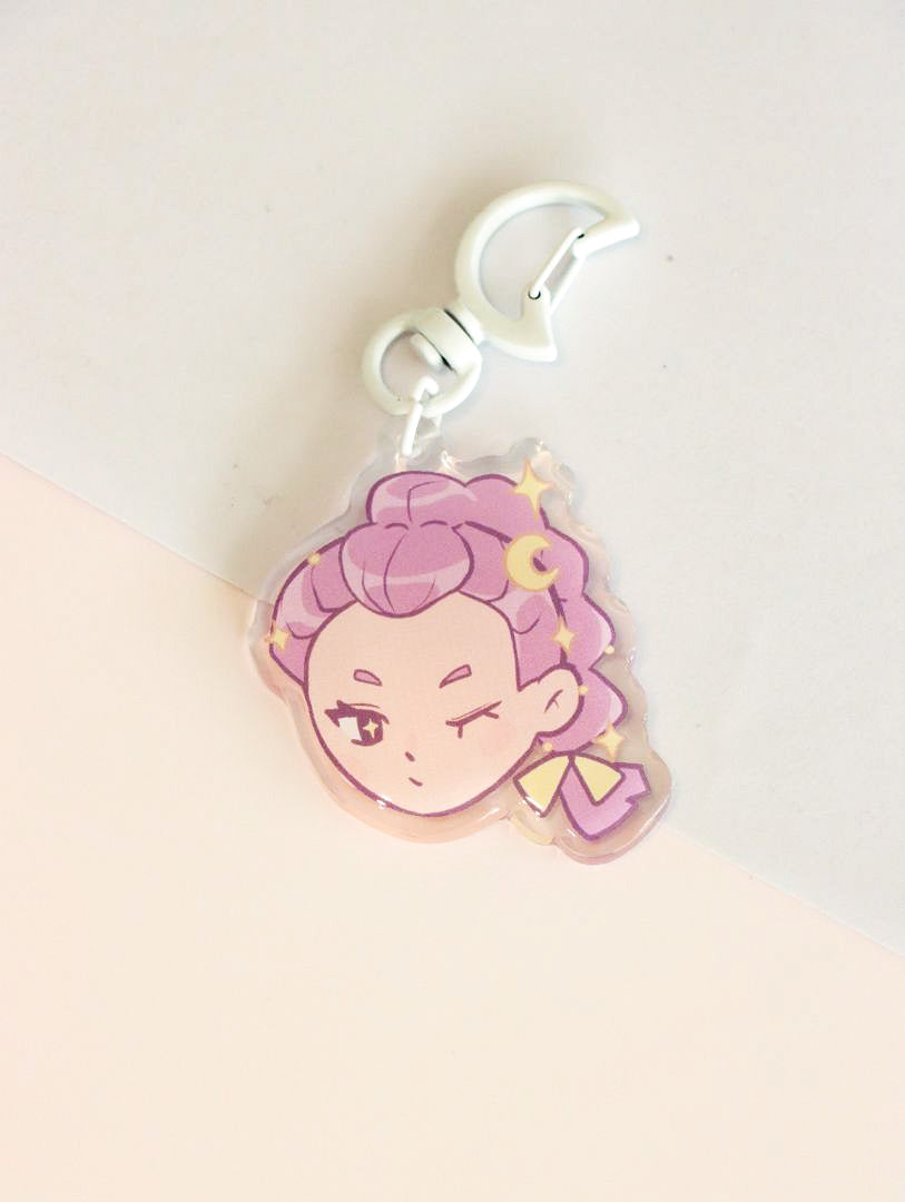 Epoxy finish Acrylic Keychains with white moon shaped clasp